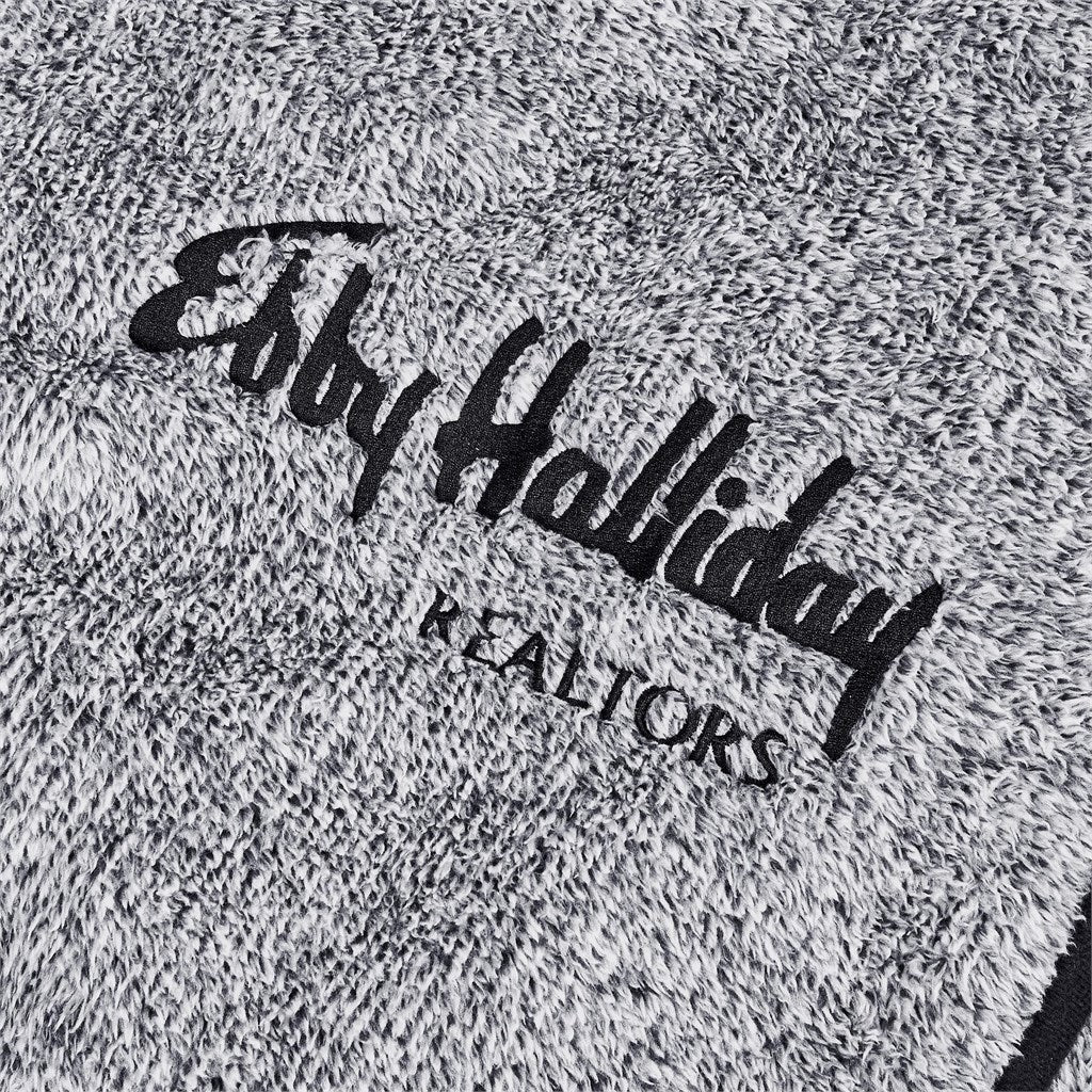 heather fleece blanket with plain black fleece binding