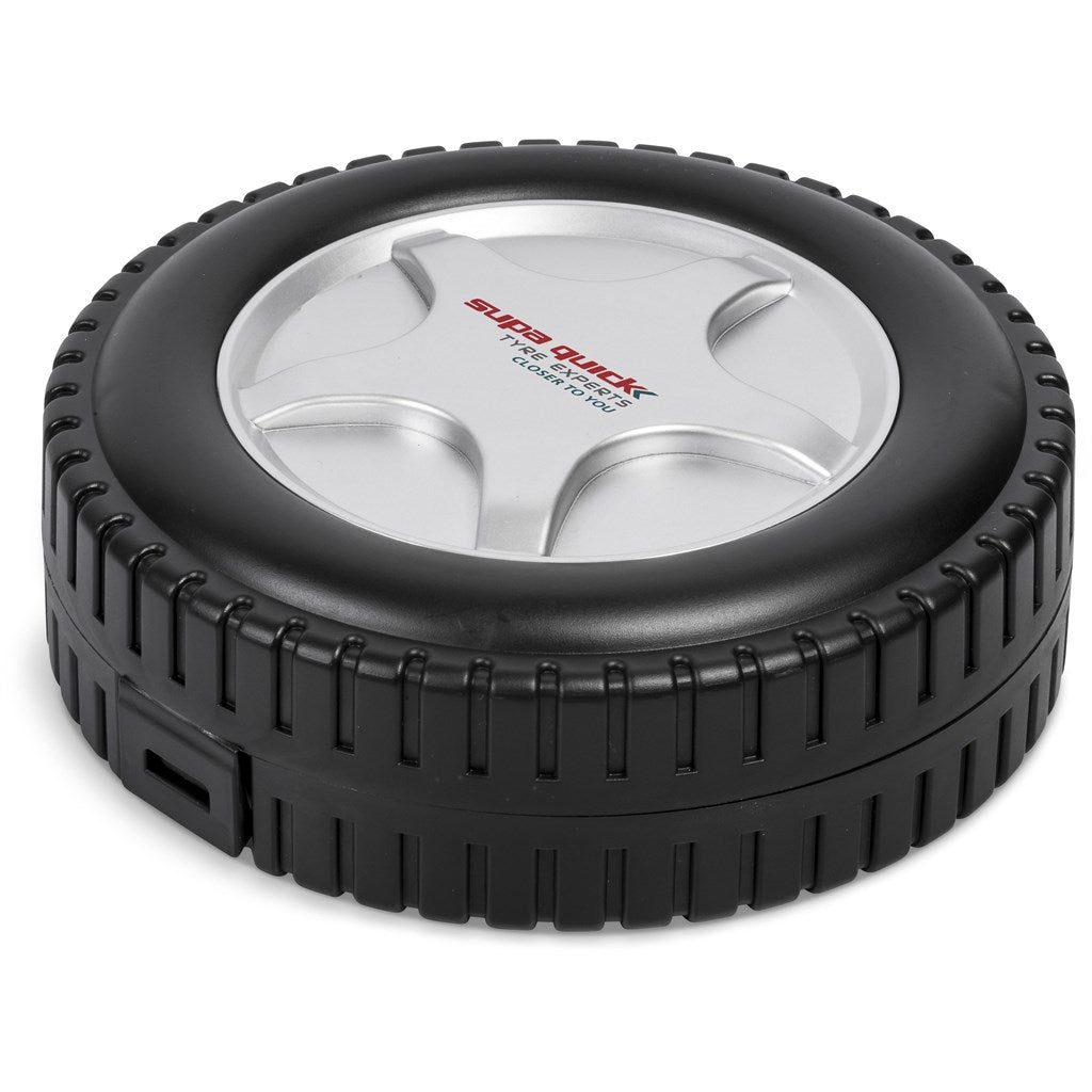 Get your next promotional event rolling with this DIY tyre-shaped tool-set. Includes assorted bits , assorted sockets , bit extension , long-nosed pliers ,6 x precision screwdrivers , side cutters, socket.