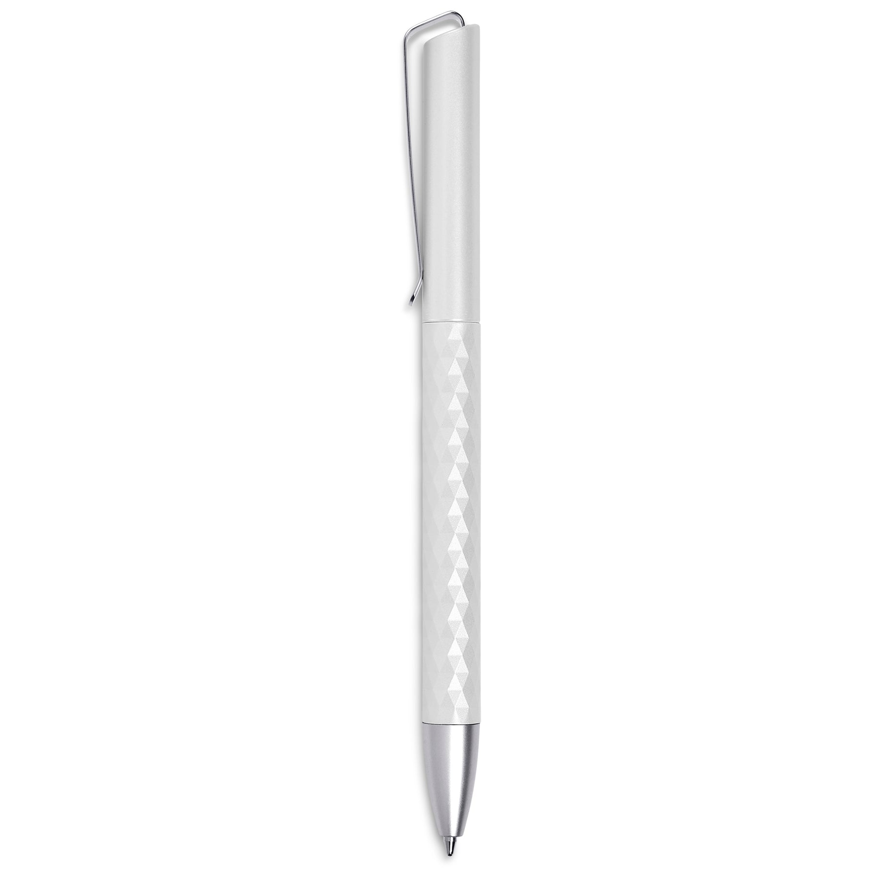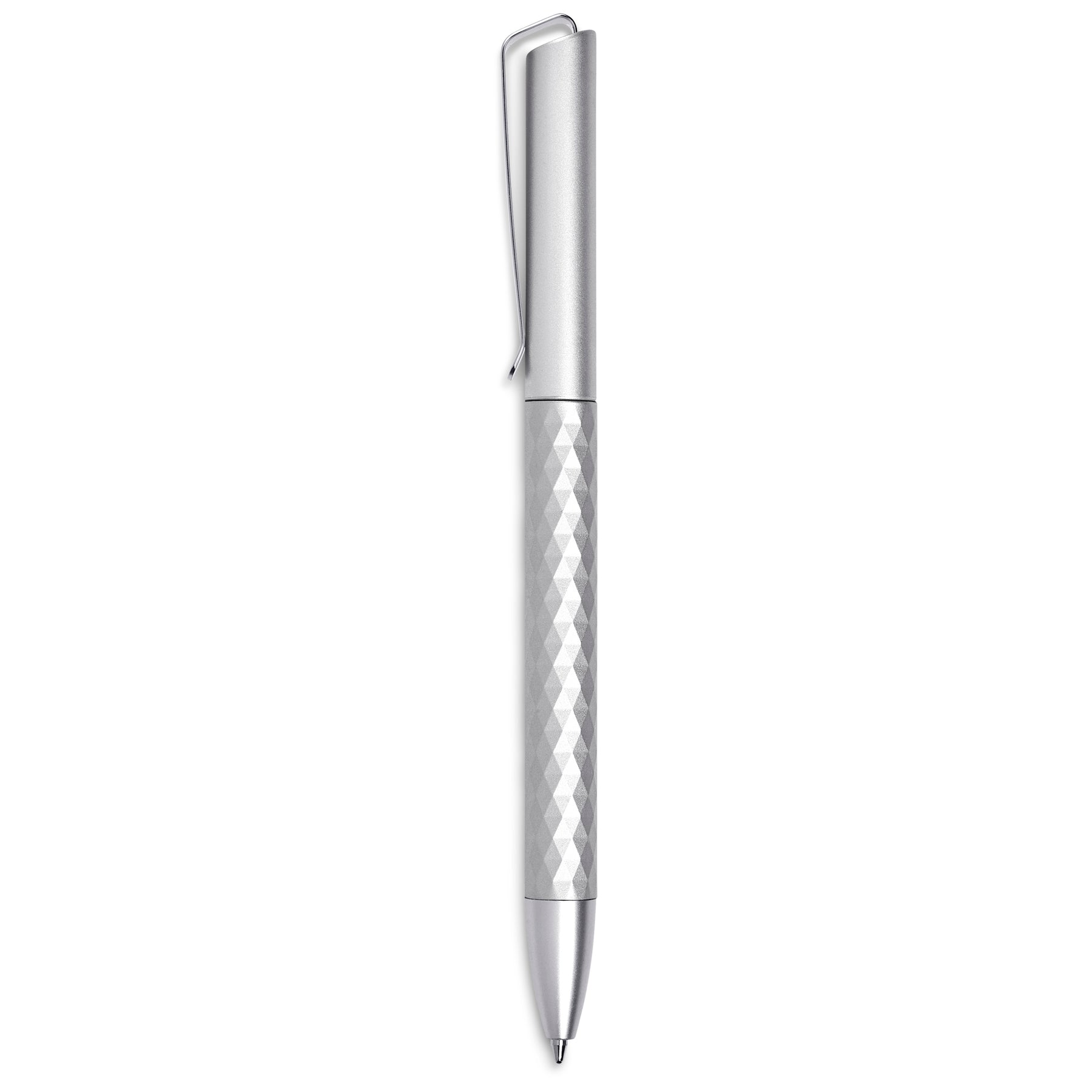 Featuring a moulded diamond-shaped pattern on the metallic sprayed plastic lower barrel, this ball pen has a metal clip. The upper barrel is also made from sprayed plastic and can be branded with your logo or message.